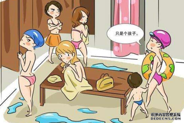 孩子和同性或异性的父母在公共浴室同浴,正好是创造性教育的环境,让孩子自然地觉察到男性和女性、成人和孩子在生理发育上的不同,父母还可抓住时机,进行适时、适度的性别差异的教育,使孩子牢固地树立起男、女性别差异的观念和良好的性意识。美国一位幼儿教育学者说得好: 在孩子还在学前年龄时,父母在家中稍微赤身裸体是很好的性教育,可使孩子对性与身体构造有较放松而健康的态度,不过待7、8岁以后,就该保守一点了。孩子到了7、8岁以后洗澡时,也许希望把浴室的门关起来,就尊重他这隐私吧!父母们也该这样了。
