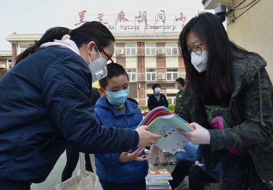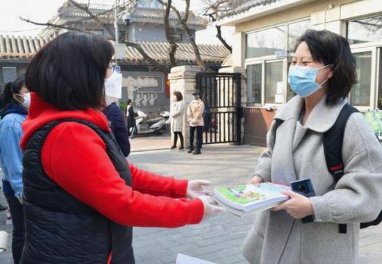 北京小学丰台万年花城分校制定的“无接触”领教材方式,是每班请五六名家长当“志愿快递员”,帮助将每一本新教材送到自家附近的孩子们手里。同时,学校统计了不能到校领取教材的学生名单,并保证负责到底。