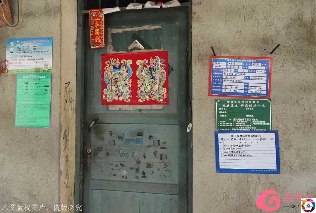 黄雪娟一家来自广西钦州钦南区那彭镇,住在一个贫困的小村子里。2000年,黄雪娟和丈夫陈善安结婚,那时黄雪娟才19岁。结婚后家里只有三亩地,平时夫妻两人种点辣椒、黄瓜和玉米,每年收入一万多元,经济条件并不好。在小子泽童年的记忆里,房门边挂着的各种扶贫联系卡,和家里勉强能填饱肚子的窘迫。图为陈子泽家门前贴着扶贫联系卡。
