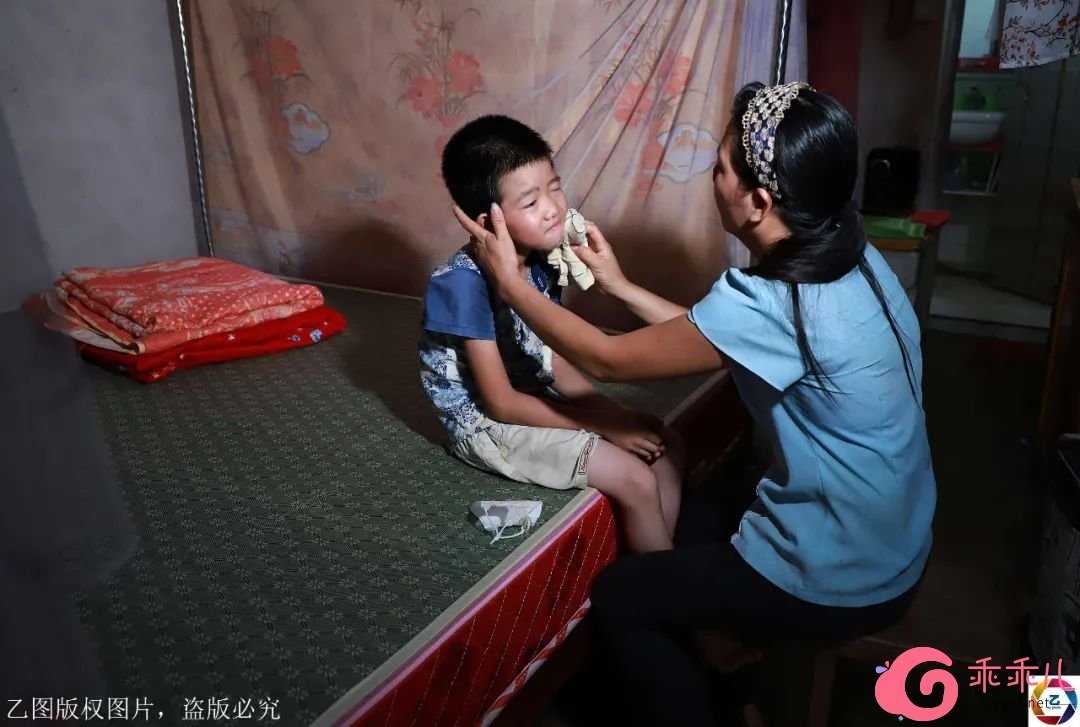 这四年来,黄雪娟几次差点就失去了儿子。2019年他们一度因为无钱治疗,把小子泽带回了老家,靠土方子给孩子维持生命。到后来小子泽一闻到药味就反胃,到吃药的时间就躲到外面,每次都要黄雪娟将他拖回家吃药。“如果不坚持,几个他都没了。”黄雪娟说。图为在老家时,妈妈照顾陈子泽。
