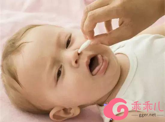 1、当鼻屎引起宝宝出现鼻塞的状况时,可拿婴儿棉签沾些温水或婴儿油给他的小鼻孔滋润一下,在宝宝哭的时候或是打喷嚏的时候把鼻屎带出来,尽量不要人为干预。