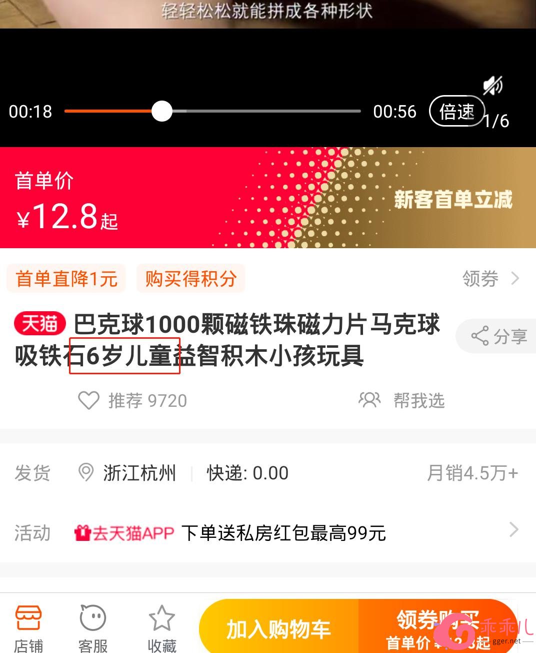 在一家月销售超过4.5万+的店铺,该款巴克球玩具的标题为: “马克球吸铁石6岁儿童益智积木小孩玩具”